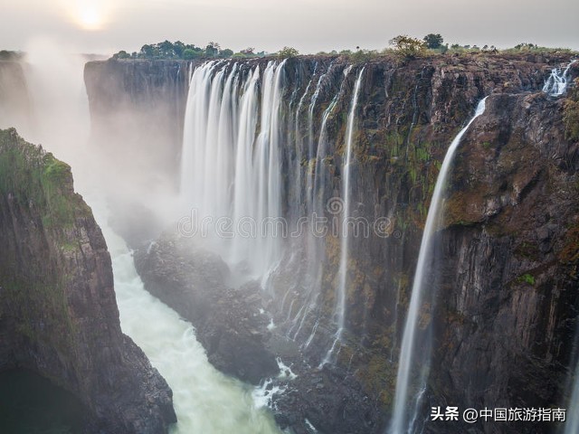 维多利亚大瀑布位于非洲南部的赞比西河上,坐落于赞比亚和津巴布韦的边境之间,是世界上最著名的瀑布之一。瀑布宽约1700米,最高处达108米,以其水量丰富、瀑布宽度和美丽景色闻名于世。维多利亚大瀑布的形成源于地质运动。约1.5亿年前,地壳的断裂和下沉形成了赞比西河峡谷,河水顺着峡谷流向印度洋。随着时间的推移,河水不断侵蚀岩石,形成了如今的维多利亚大瀑布。