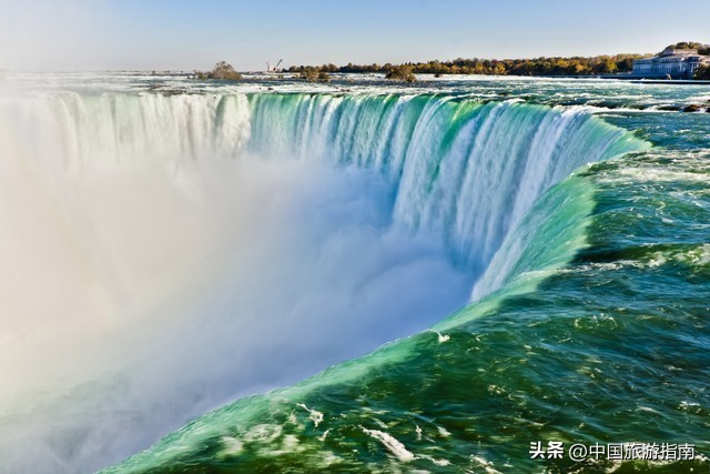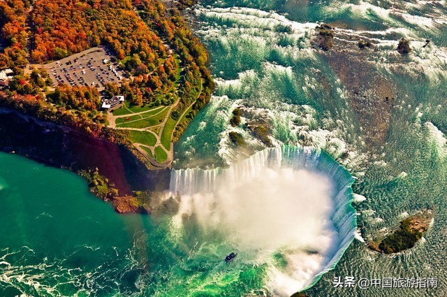 尼亚加拉大瀑布位于加拿大安大略省和美国纽约州的交界处,是北美地区最著名的瀑布之一。尼亚加拉大瀑布的形成与尼亚加拉河的水流有关。尼亚加拉河连接了美国的五大湖中的伊利湖和安大略湖,河流经过一个狭窄的河谷,在这个河谷中形成了三个瀑布,它以宏伟壮观、水量丰富、水势澎湃而闻名。
