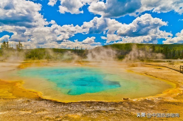 黄石国家公园位于美国怀俄明州、蒙大拿州和爱达荷州的交界处,它是美国第一个国家公园,也是世界上最早的国家公园之一。黄石国家公园内的地质特征非常丰富,包括火山、峡谷、瀑布、温泉和地热资源等。这里有世界上面积最大的活火山之一——黄石火山,火山活动造就了黄石公园内的地热奇观,如著名的“老忠实”喷泉、大棱镜温泉等。