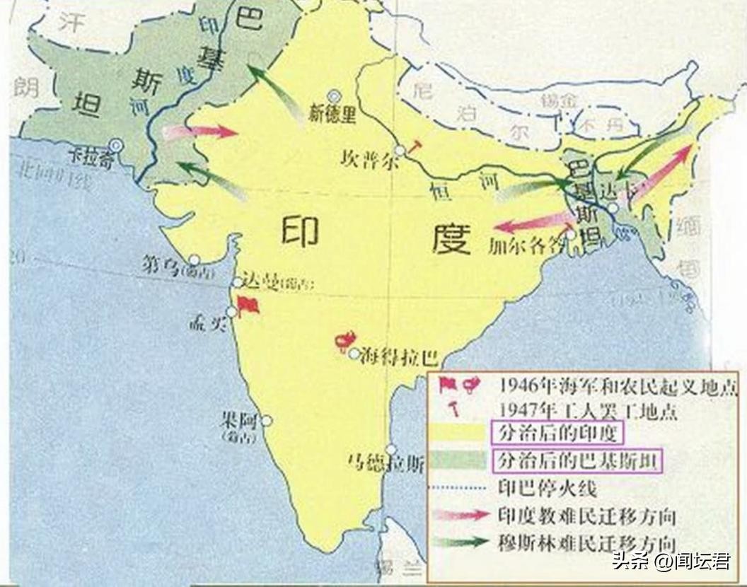 在英国殖民的190年后,也就是1947年,当年的8月份在印度次大陆上发生了一件很重要的历史事件,大英帝国统治下的英属印度解体诞生印度联邦和巴基斯坦自治领这两个新国家。换句话说在1947年之前印度和巴基斯坦其实是同一个国家,这个国家长期被英国殖民,当时的英国颁布了《蒙巴顿方案》也就是著名的“印巴分治”。