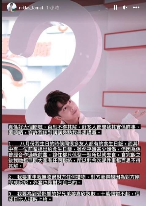 此后,林正峰在社交媒体上公开声明,两人仅为前辈与后辈的关系,并暗指这段“绯闻”是他在娱乐圈中的一段世途险恶的教训。