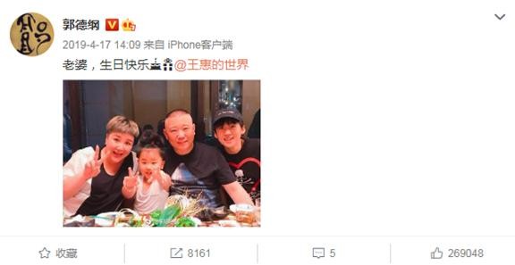 2019年4月17日,郭德纲发文:“老婆,生日快乐。”