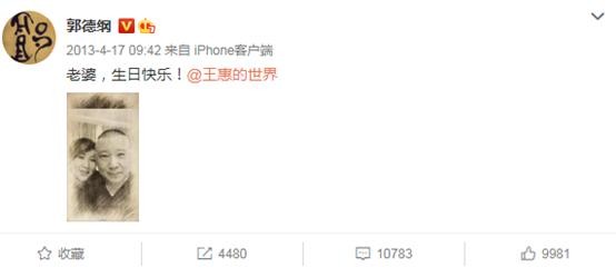 2013年4月17日,郭德纲发文:“老婆,生日快乐!”
