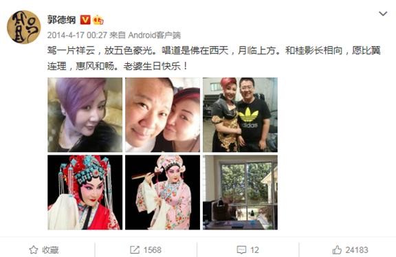 2012年4月17日,郭德纲发文:“老婆,生日快乐,永远幸福!”