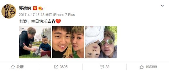 2017年4月17日,郭德纲发文:“老婆,生日快乐。”