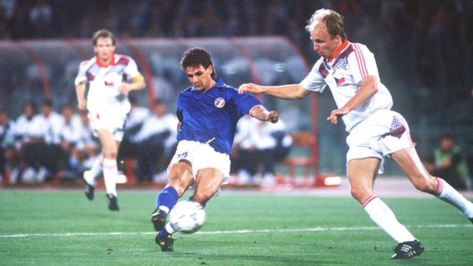 他的队友巴乔还不是意大利队的绝对主力,但已经表现出了超级巨星该有的一切,对阵捷克斯洛伐克的那粒进球,也被评选为当届赛事最佳进球。