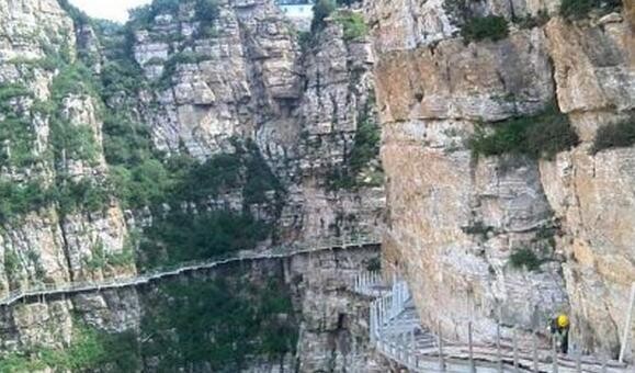 推荐的精品游览线路是:韭菜园——飞狐峡游览线——飞云口——白石画廊(悬空玻璃栈道)——双雄石游览线——韭菜园。从韭菜园直下1600米的飞狐峡游览线,在两个半小时的游览中将白石山的精品景点留在眼里、心里和相机里,同时感受白石山在这个海拔所看到的蓝天白云,奇峰怪石。特别不要忘记去太行之神那留影哟,这可是白石山的标志。到达飞狐峡后游客可以有两个选择到达飞云口:一个是乘坐飞云口索道上山,直线距离900米,只需5分钟;也可以步行上山,但此处游步道曲折向上足有3千米,道路台阶加起来有100层楼高,需要用时1.5——2小时,为了保留体力不影响游览后面的美景,索道是不错的选择哦。从飞云口开始就是白石山最神奇的工程“绝壁上的栈道”——白石画廊。这条栈道之所以称为“白石画廊”,不仅仅是因为在这个海拔欣赏白石山更有一种水墨画意的大气之美,更是因为在这个栈道上游客能够感受云在脚下,风在身旁如临仙境的惬意自由。[page]