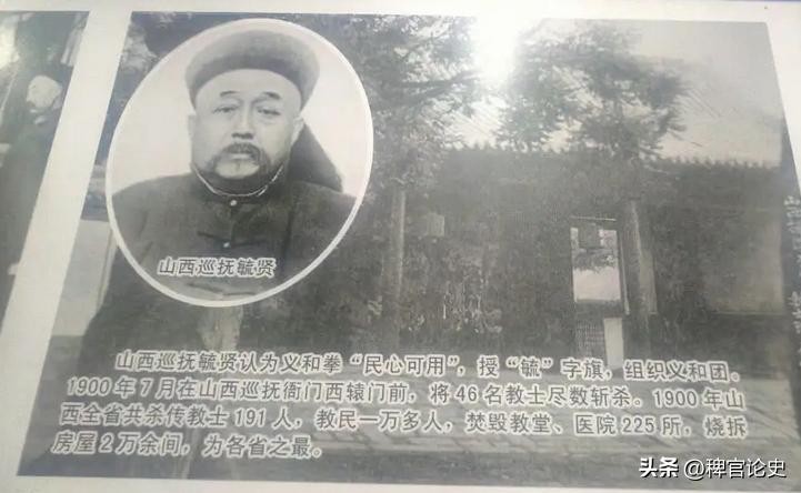 当时西方列强入侵我国,毓贤很是不忿,慈禧怕洋鬼子,他可不怕。干脆就将自己区域内的洋鬼子都杀光了,因为死的外国人大部分是传教士,所以被称为“山西教案”。这次他也改不了喜好杀戮的毛病,杀死外国人百十多个,却牵连处死了中国百姓一万多人。
