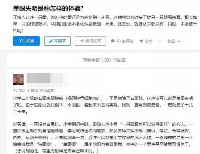 去年,因为在网上看到有人问一只眼睛是什么感受,陈晓婷就写了一篇回答,也是那篇回答,让她走进了大众的视野。大家才发现,原来世界上还真的有这样勇敢坚强乐观励志的小姐姐!