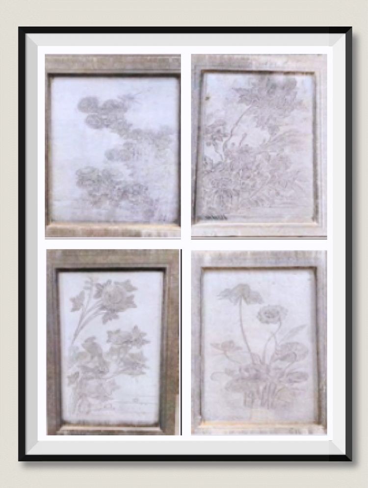 四件石屏风分别为:凤凰来仪、池鹭荷塘、粉蝶金菊、八哥芙蓉。四幅图案分别代表了春、夏、秋、冬四个季节。寓意富贵吉祥、雍容高洁。