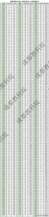 成都市高2024届一诊考试一分段成绩统计: