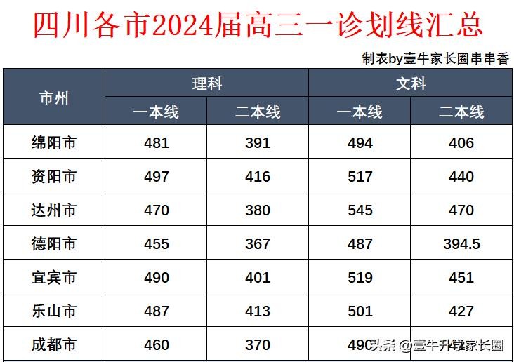 各个市的划线分别代表什么意思?一本线、二本线又是多少?壹牛为大家整理了绵阳、资阳、达州、德阳、宜宾、乐山、成都这几个市的一诊划线情况,还是老规矩,今天第一时间通过微信公众号分享给各位家长朋友们,供大家做升学参考!