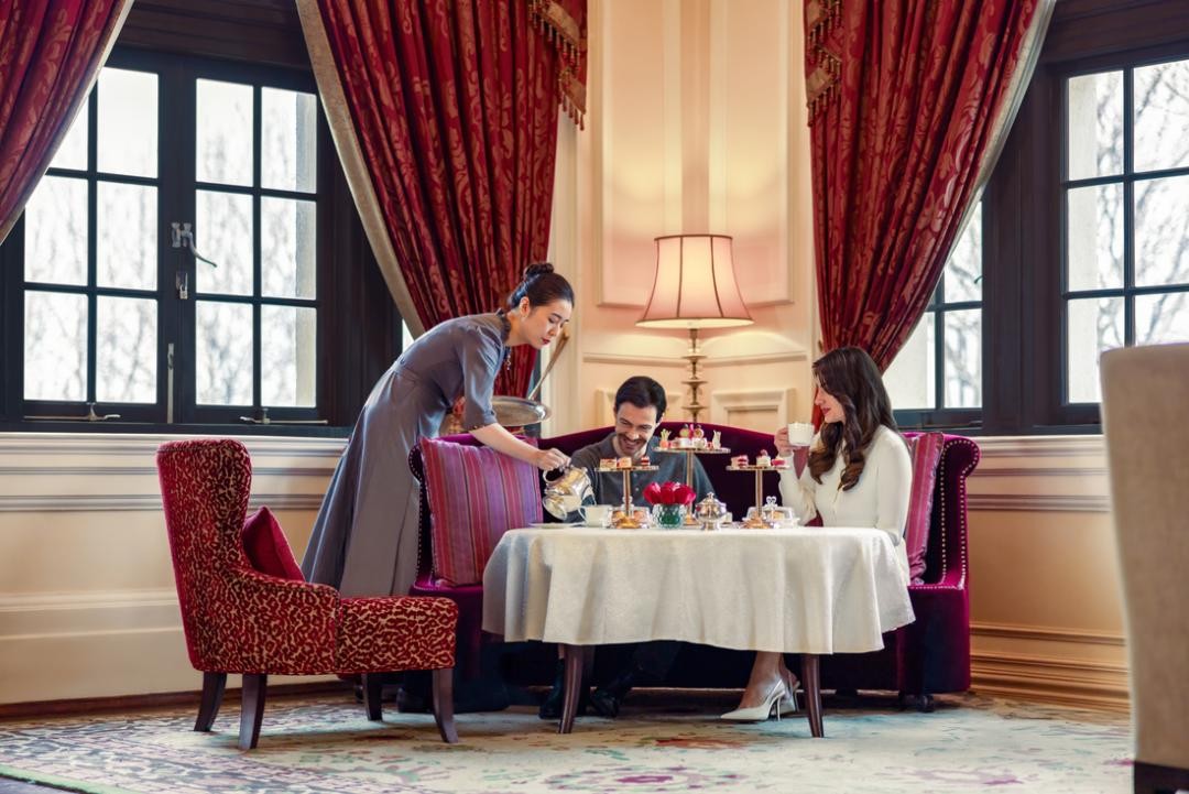 廊吧则以其标志性的34米远东第一长吧台闻名。今年新春,酒吧推出全新酒单,将东方传统元素与外滩历史融合,带来独特的品饮体验。宾客更可细品招牌华尔道夫鸡尾酒,伴随悠扬乐声,于新年之夜感受复古风情与社交魅力。下午茶体验亦是酒店的亮点之一。与德国百年经典品牌史戴芙联名打造的节日限定红丝绒下午茶,以甜品与小食的匠心设计,带来兼具视觉与味觉享受的非凡体验。