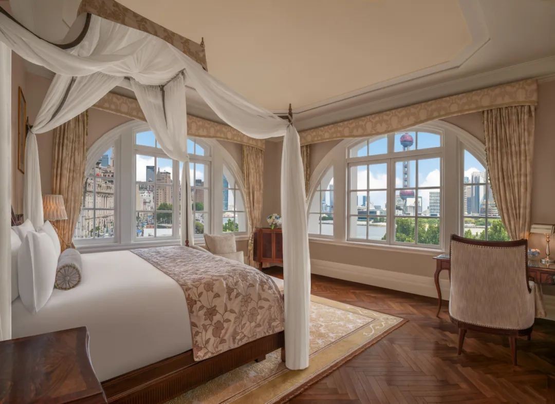 酒店以两幢经典建筑为载体,设置了260间奢华客房与套房,为宾客呈现现代与历史交融的卓越居住体验。其中,位于百年历史建筑内的20间外滩总会套房,以精美复古的木质家具、大理石卫浴和璀璨水晶吊灯,重现百年前上海名流的优雅风范。