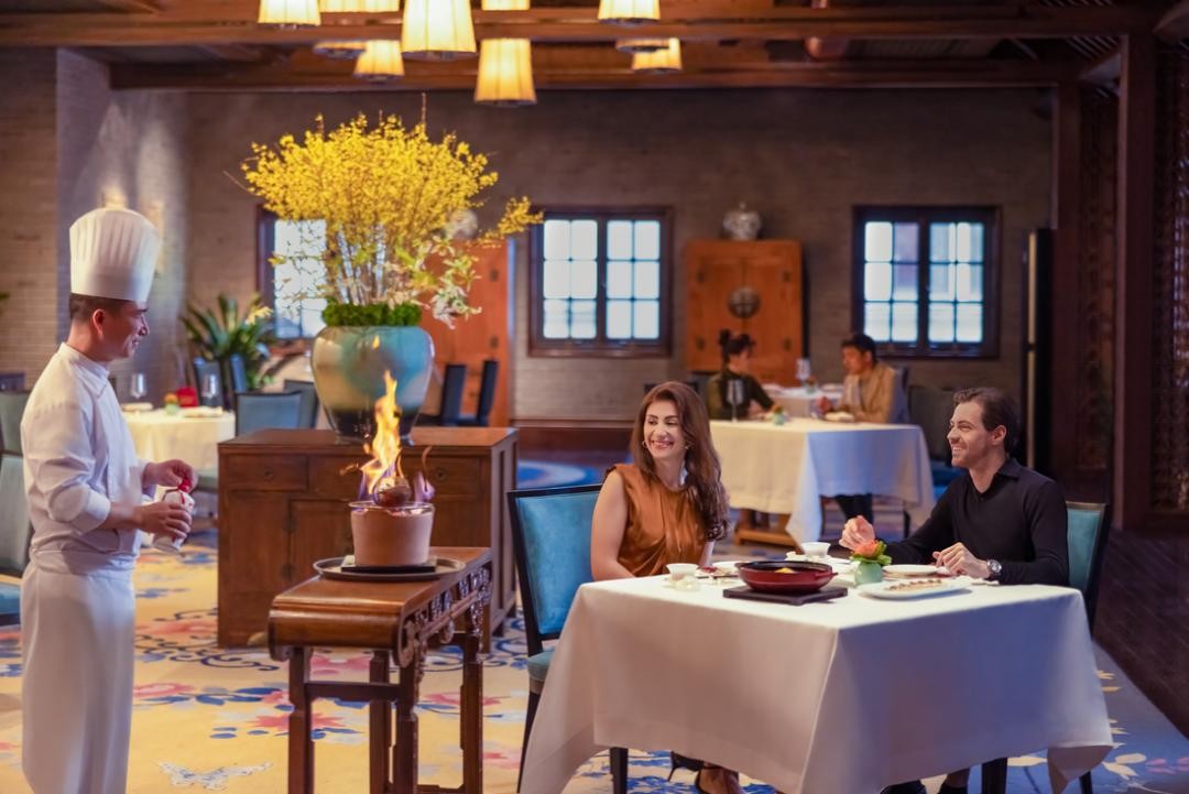 蔚景阁中餐厅以甄选当季食材和现代烹饪手法,传递粤式客家风味。新春期间特别推出年夜饭套餐,包含象征圆满的五彩凤枝、寓意富贵的东星斑等经典佳肴,每道菜肴满载节庆寓意与极致口感,尽显团圆喜庆之意。