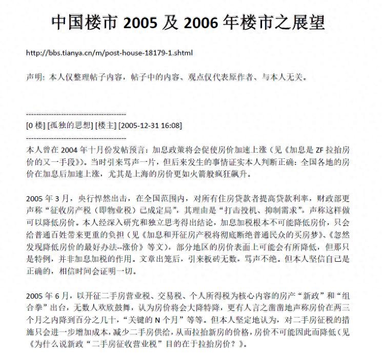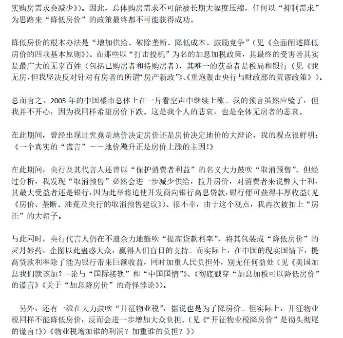 天涯神贴汇总:中国楼市2005及2006年楼市之展望