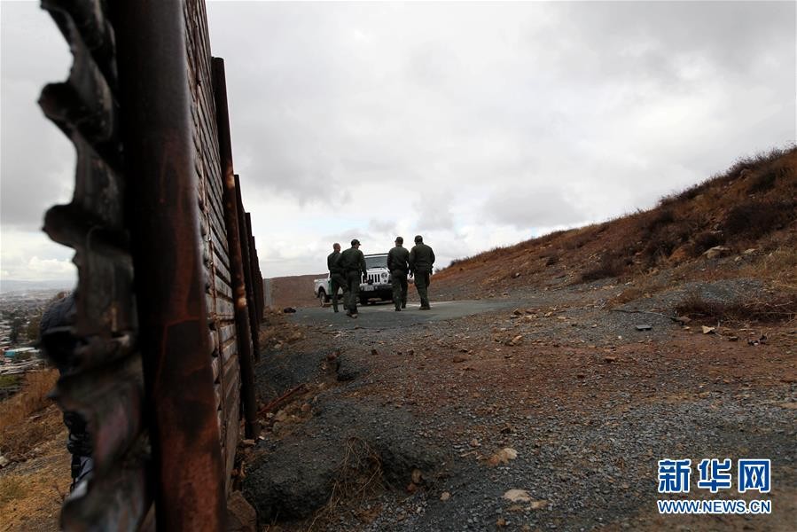 1月10日,几名美国士兵在与墨西哥蒂华纳接壤的美墨边境原有隔离墙旁巡逻。