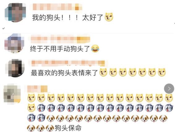 朋友们惊喜地发现,微信也可以发“狗头”了。↓