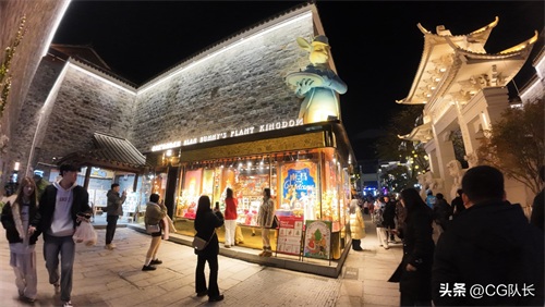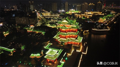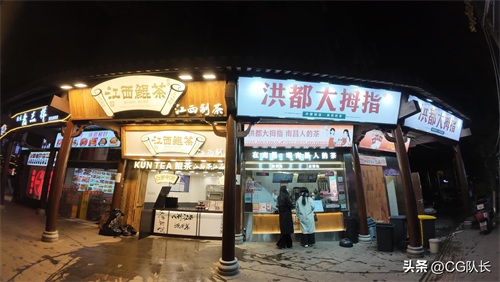 八一广场旁边有个万达广场,但是好像已经只剩四楼的一些饭店商铺和一楼区域了,大概旁边开了武商Mall已经搬走了不少商家。八一广场打卡完就坐地铁1号线到达万寿宫历史文化街区了,这里也是仿古商业区,年轻人来这边玩的很多,夜景确实很不错。下面分享一些万寿宫的照片
