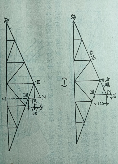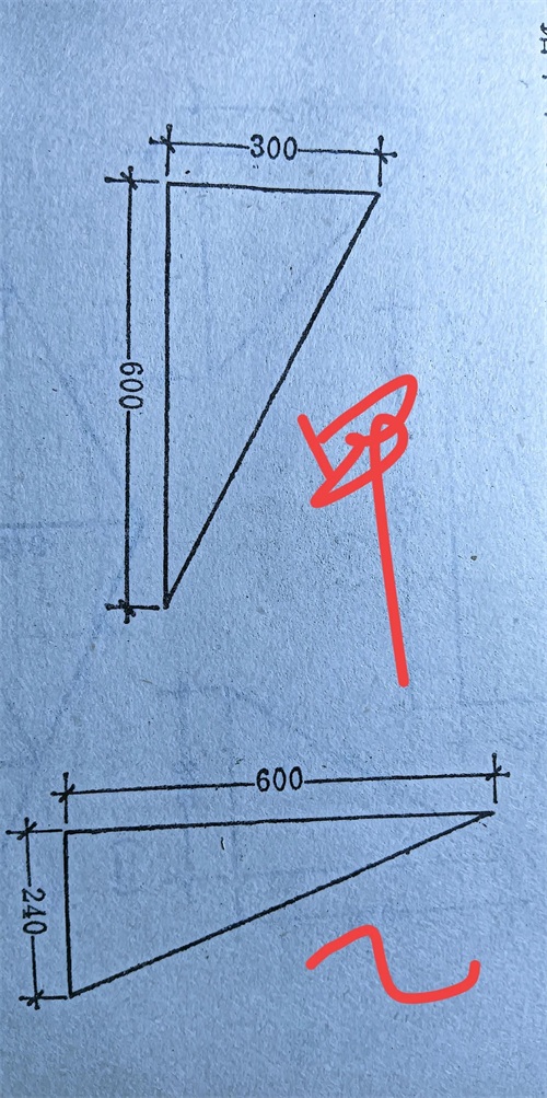 例如:有甲,乙两三角形,其边长尺寸如下图,求其坡度?
